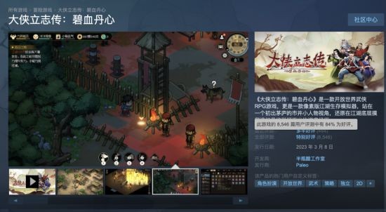《大侠立志传:碧血丹心》是一款武侠像素版“江湖生存模拟器”,玩家将扮演一个初出茅庐的市井小人物,在江湖中摸爬滚打、体验多样身份,最终脱颖而出。