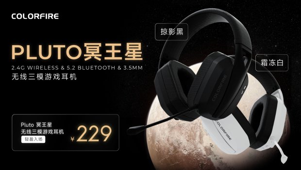听见不只眼前,探索声音宇宙的每一个星球。以科技花火点燃多彩生活,Colorfire再次更新全新星球系列游戏耳机——Pluto冥王星无线三模游戏耳机,羽量级超轻佩戴体验、30小时超长续航,内外双麦克风阵列超清晰立体语音收录,一键切换连接模式,黑白极简双色,带来全新轻音体验,售价为:229元。
