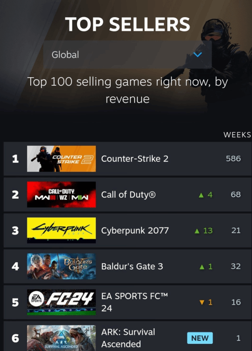 据Steam页面显示,《使命召唤》已跻身Steam全球热销榜第二名。游戏在该平台每日玩家数也将近有10万人,位列排行榜第十(包含战区、现代战争2玩家)。