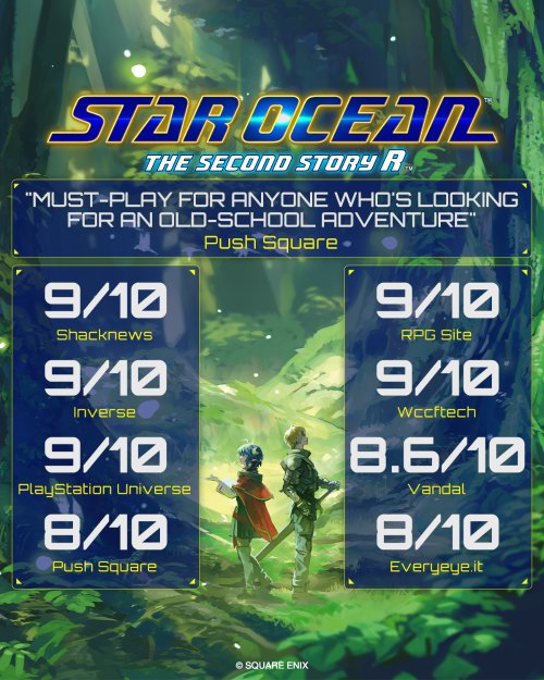 今日(11月8日),SE发布了《星之海洋2 第二个故事R》的媒体赞誉图,多家媒体打出高分。
