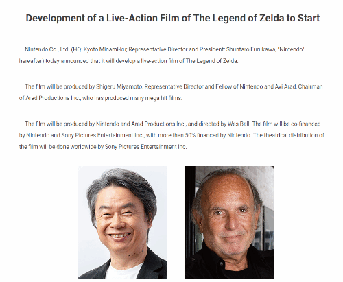 任天堂还表示,这部电影将由自己和索尼共同出资,其中任天堂承担了超过50%的费用。
