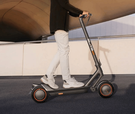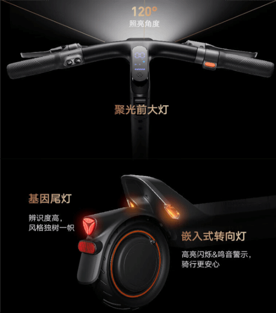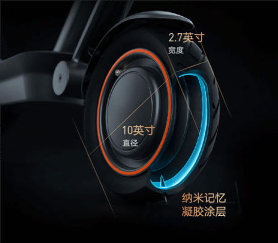 值得一提的是,该滑板车采用10英寸真空胎,官方宣称真空胎内壁喷涂凝胶层,遇穿刺受损可自修复,保证骑行舒适和安全。支持App智能互联,能够OTA无线升级、一键开机、能量回收。