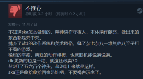 从玩家评价来看,尽管《盐与献祭》的核心玩法仍然是《盐和避难所》那套,但许多细节和机制发生了改变,而且是往坏的方向改变,导致实际游玩体验比较差。这对于玩过前作的玩家来说难免会形成心理落差。