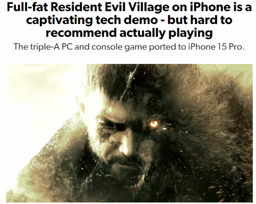 iOS版《生化危机8:村庄》现已发售。近日,测评媒体数毛社digitalfoundry分析了这款3A游戏移植到iPhone 15 Pro手机上的表现,并得出了“很难推荐在该平台游玩”的观点。