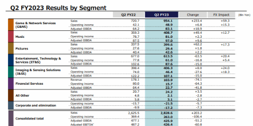 收入方面,该季度索尼游戏与网络服务业务收入达到9540亿日元;索尼影视业务收入3996亿日元;索尼音乐业务收入4,087亿日元;娱乐、技术与服务收入6135亿日元。