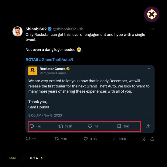 R星在昨天正式宣布《GTA6》将于12月公布首个预告视频,这一消息对粉丝们来讲无疑是一个巨大的惊喜。