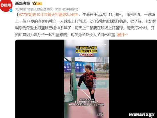 据西部决策报道,山东淄博。一球场上一位77岁的老奶奶独自一人球场上打篮球,动作矫健投球稳打稳进。