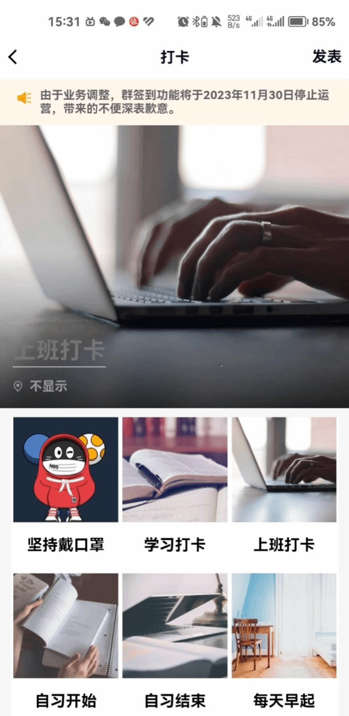 11月9日消息,据QQ官方信息,由于业务调整,QQ群签到功能将于2023年11月30日停止运营。