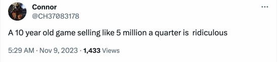 玩家也感叹表示:“一款10年前的游戏季度销量还能有500万,真实太荒谬了。”尽管各种打折,甚至epic都送过这款游戏,但该作还是曾长期位居Steam畅销榜(按销售额排名)前十名,目前也仍在全球榜前二十。玩家们每次看到它这么畅销,都忍不住吐槽:“到底是谁还在买!”