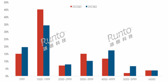 其中,4000-6000元的中高端价格段在第三季度占比为24.1%,比去年同期上涨了10.3个百分点。