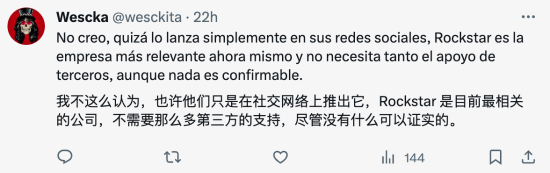 《GTA6》首支预告片已宣布将于12月初公布,TGA 2023也将在12月初举办(12月8日、周五)。因此,很多玩家都认为《GTA6》会在TGA上公布预告。知名游戏频道El Analista De Bits也发文询问了玩家们对于该猜想的看法,其表示R星在展示预告片方面一直比较独立,但也不排除这种可能性。