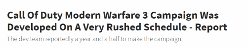 《使命召唤20:现代战争3》即将发售,然而一份新的报告指出,本作的战役部分开发进度非常仓促。