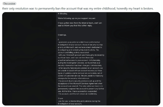 而另外,有玩家讲述自己的经历称,只要联系微软客服并提供相应的序列号、网络信息等证明,微软会帮他找回账号的。