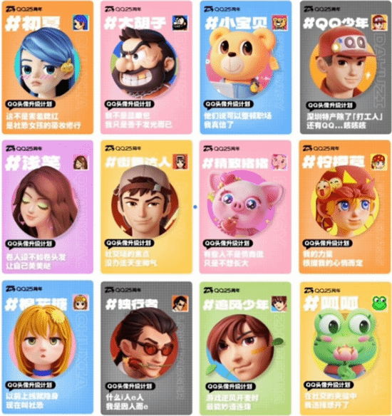 在QQ 25岁生日到来之际,腾讯发布了“QQ经典头像升级计划”,将经典的像素风QQ头像升级为3D版头像。