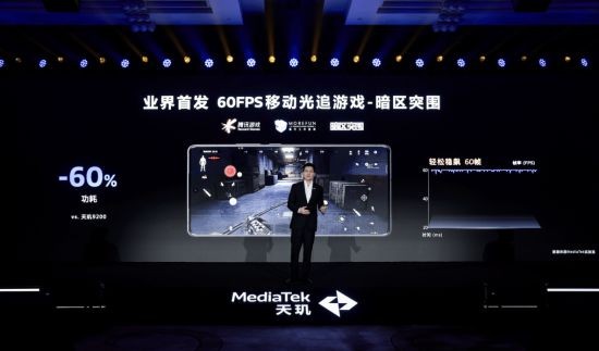 得益于领跑级的光追性能,天玑9300在业界首发支持《暗区突围》60FPS光线追踪,不仅轻松稳定60帧且十分稳定,功耗也显著降低60%,能为用户带来更加逼真的超流畅移动光追体验。