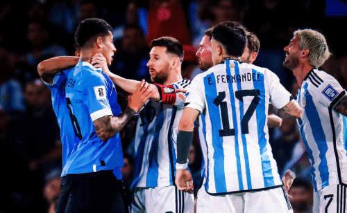 在早些时间的南美区世预赛中,阿根廷0-2不敌乌拉圭。比赛期间双方曾爆发激烈冲突。