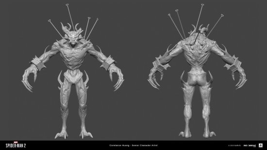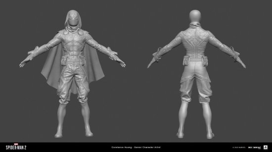 近日,失眠组的高级人物设计师Constance Huang在Artstation分享了《漫威蜘蛛侠2》中黑猫、迈尔斯以及各种敌人角色的模型设计图。从这些图片来看,游戏的人物模型设计还是相当精致的,一起来欣赏下吧。
