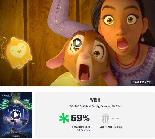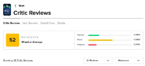 迪士尼百年大庆献礼动画《星愿》口碑解禁:烂番茄54评新鲜度59%,M站收20评综评50/100,创下华特迪士尼动画工作室近20年来最差评价。