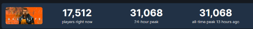 活动开启之后,《半条命》的Steam在线人数迎来持续上涨,时隔一天,人数再次飞涨至3万1068人几乎上涨了1倍,再次刷新历史纪录。