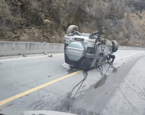 另有网友提供了拖车事故现场照片,这辆托运仰望U8的黄色拖车,左前方车头撞上了道路护栏,车损严重,并且拖挂绳断裂,致使仰望U8滚下左侧山崖。
