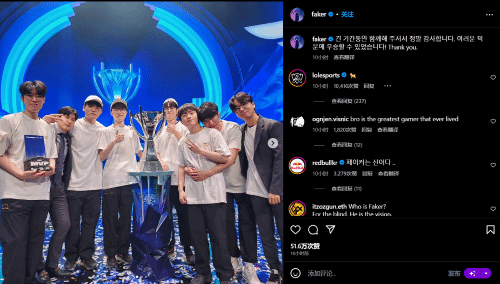 就在昨日的《英雄联盟》S13世界总决赛夺冠后,T1成功拿下了冠军,Faker也成为了史无前例的四冠王。