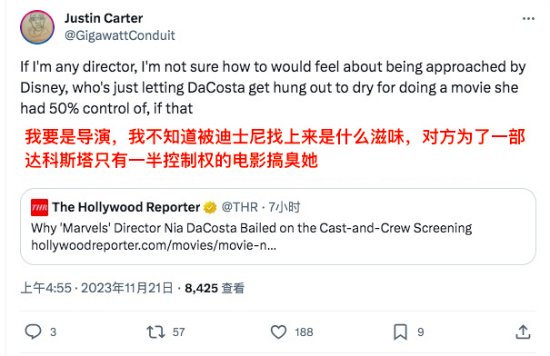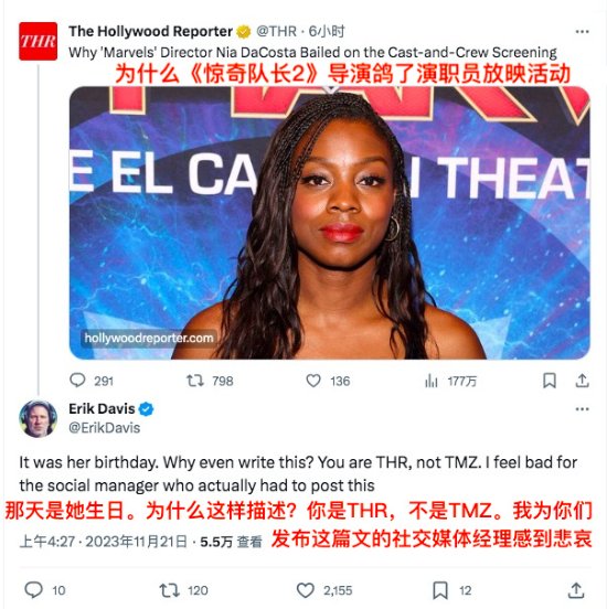 《惊奇队长2》票房失败,愤怒的漫威工作人员将矛头对准影片的导演尼娅·达科斯塔,对THR爆料称对方没有配合片方的宣传工作,在11月8日电影公映第一天未出席影片的演职员放映活动,而是选择举办生日派对,迎庆自己的34岁生日,搞得最后只能让电影的监制玛丽·利瓦诺斯主持映前活动。