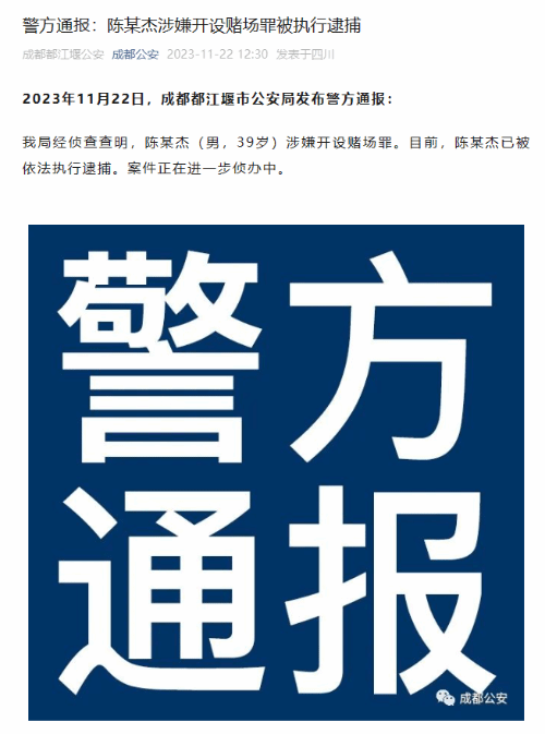 2023年11月22日,成都都江堰市公安局发布警方通报: