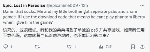 CDPR趁热打铁满足玩家需求的行为收获了好评,但其PS5实体版却被部分玩家诟病——原因是PS5版的资料片仅以兑换码的形式存在,而不是XSX版本那样的实体光盘,这无疑影响了喜爱收藏的实体玩家以及准备在日后二手转卖的人们,更有玩家单纯的不满CDPR的区别对待。