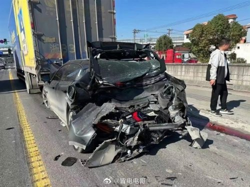 但这台极氪001的整体框架依旧完整,A、B、C柱坚挺,甚至连车门都看不出什么损伤,据称事故发生后,极氪001的驾驶员自行打开车门走了下来,并未受伤。
