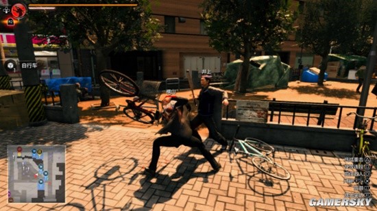 这些看起来有些超现实的科幻道具,不仅增加了战斗的变数和选择,更是为其增添了一种无厘头的混乱感。当一群手持棍棒的猛男向我冲来,我却淡定地对它们扔出一个烟头,然后在一声巨响后直接冲进人群里开创。那种感觉早已超越了小混混的街头混战,而是完全升华成了抽象艺术。