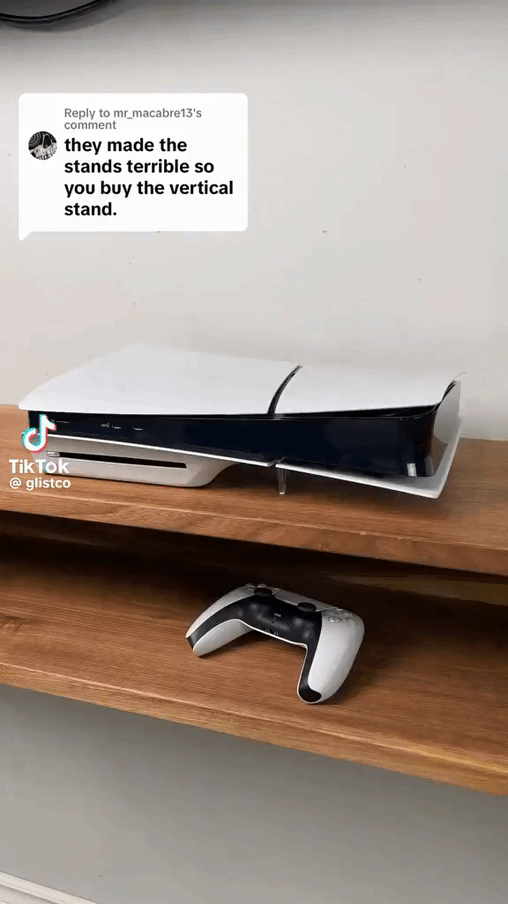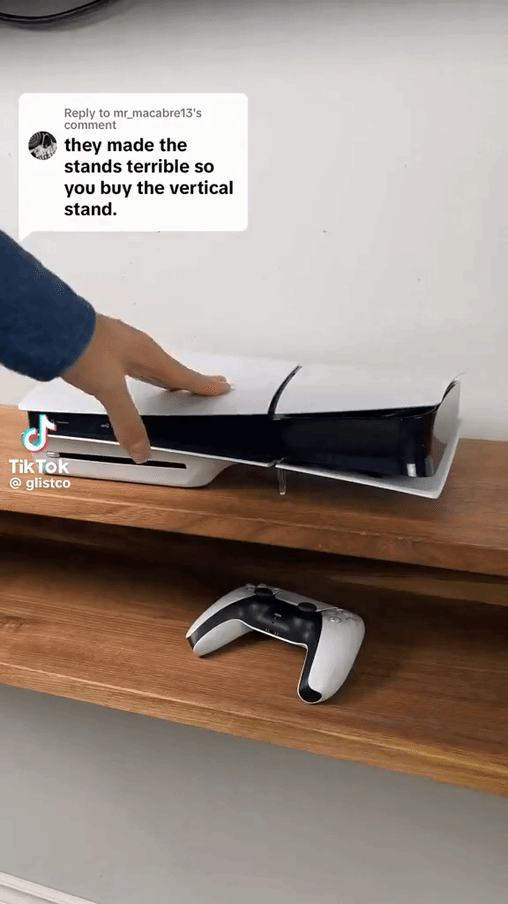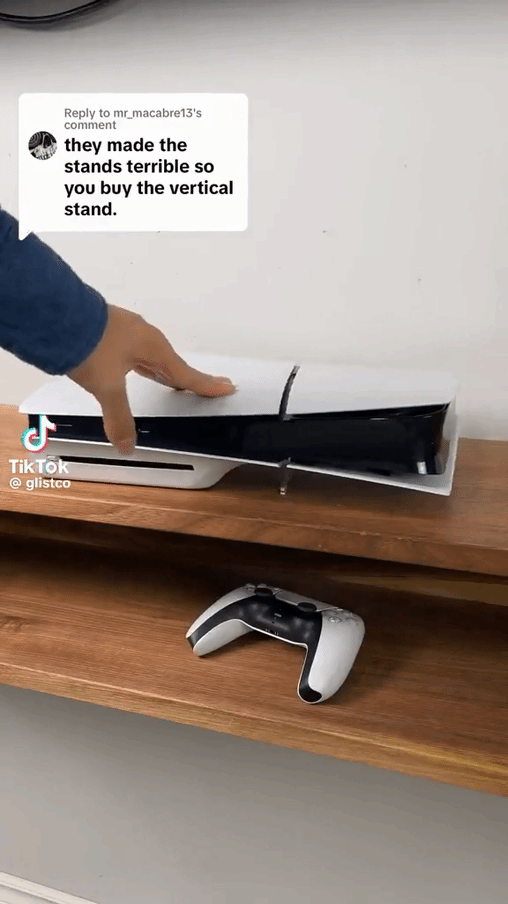 PlayStation官方在新款PS5中免费附赠了一款横置PS5的支架,本质上来讲,这个免费的支架只是两个塑料薄片。而一些人可能会想知道它的稳定性如何。Tiktok用户@glistco分享了视频就展示了其效果。