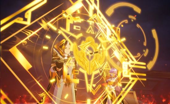 当面对强大的暗月神巫宵罗的眷属时,玩家需要根据不同敌人的特性,灵活调度不同能力的伙伴与先行者一同并肩作战,通过使用如PV中御甲型云昭千钧一发之际开盾抵挡攻击和灵祝型角色兮兮释放技能束缚敌人,通过团队间默契的技能配合,保障队伍的生存。