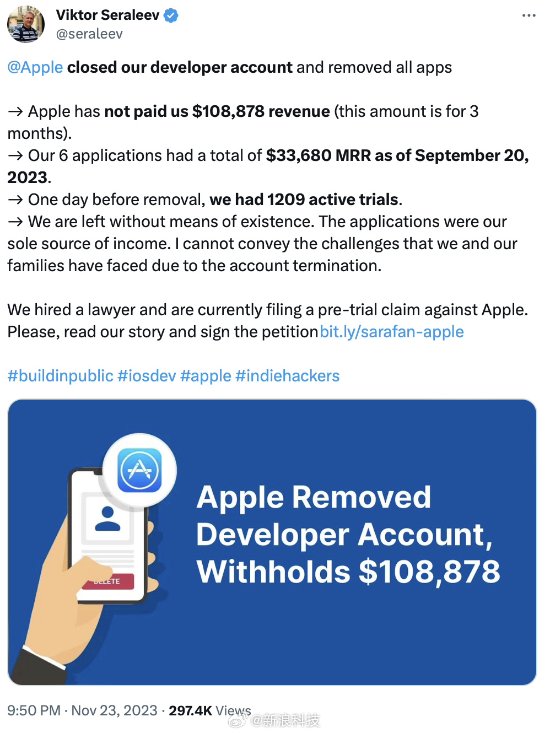 新浪科技消息,11 月 24 日消息,智利照片应用开发商 Sarafan Mobile 日前在 X 平台发文,声称该公司 App 因遭到竞争对手恶意操控,从而被苹果公司风控系统判定违规。