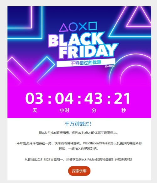 索尼官方提醒,黑五优惠活动即将结束,玩家还剩3天左右的时间享受折扣价。