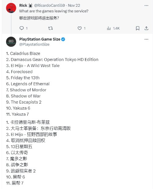 知名PS数据挖掘博主PlayStation Game Size与推特上透露了即将在12月离库的游戏,《如龙6》《如龙7》在列,完整名单如下: