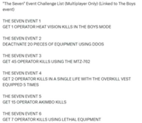 在今年6月份,《COD19》联动了《黑袍纠察队》,祖国人/星光和玄色这联名中加入战斗,目前推主MWIIINTEL透露《COD20》将再开联动事件“The Boys vs The Seven”,火车头也将在这次活动内加入《使命召唤》。