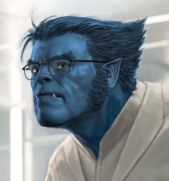 漫威工作室视觉开发总监安迪·帕克分享了由凯尔希·格兰莫饰演的X战警成员“野兽”的视觉概念图。概念图的场景是在X战警的基地里,野兽上半身穿着实验服。