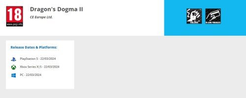 此前,欧洲游戏评级网站PEGI曾短暂泄露《龙之信条2》的发售日期为2024年3月22日,后被删除。