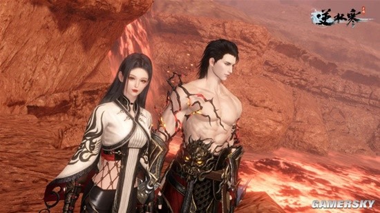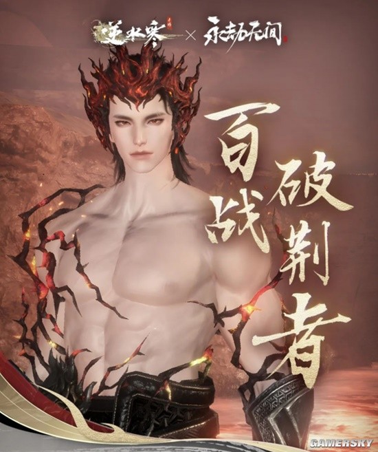 男款时装则选取了岳山在战场披荆斩棘,化身修罗的勇武形象。胸口虬曲狰狞的伤疤无需抹去,是铁血战役的胜利勋章。剑拔弩张的刺青之间凝聚熊熊烈焰,炽热之意连荆棘也难以阻隔。腰间之兽目光灼灼,獠牙尖利,令敌人视之震颤,想必这两个皮肤的加入,更能燃起《逆水寒》手游玩家在游戏中的斗志。