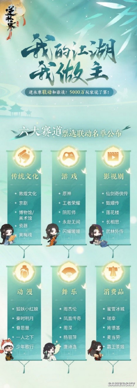 此次联动的起因要追溯到一个多月以前,《逆水寒》手游官方发起了一次玩家投票,此次投票旨在让玩家们选出《逆水寒》手游的首次联动对象。投票活动分为六大赛道,每个赛道的投票活动都吸引了大量玩家关注,活动影响力空前,甚至邀约《王者荣耀》联动的消息也冲上热搜,并引得各大媒体争相报道。