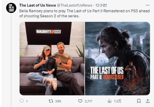 《美末2》复刻版游戏和第二季剧集都将于2024年年初发售和开拍,当被询问是否会在拍摄前游玩这款游戏时,贝拉给出了肯定的回答。