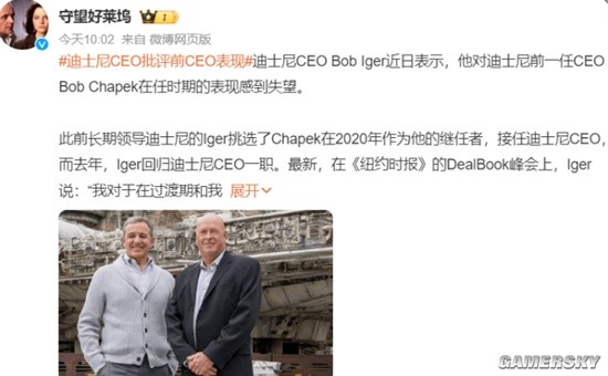 迪士尼CEO Bob Iger近日表示,他对迪士尼前一任CEO Bob Chapek在任时期的表现感到失望。