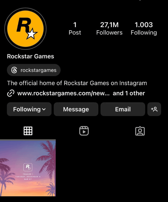 一直以来,R星在社交媒体上都相当活跃,经常转发粉丝帖子并发布有关其现有游戏的更新。然而,现在所有这些内容都已被R星从Instagram上删除,只保留了预告片的宣传图。