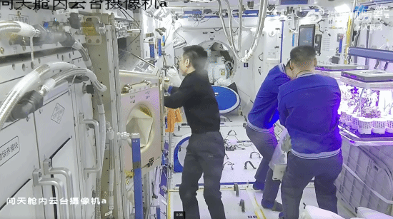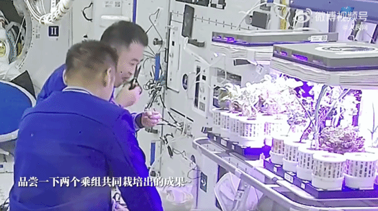 神舟十七号航天员乘组对“太空菜园”中种植出的新鲜蔬菜进行了采摘,并品尝了新鲜美味的“太空蔬菜”,同时也为新一批蔬菜培养做准备。