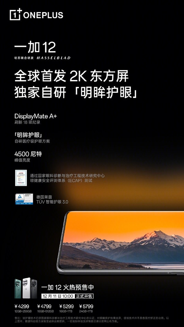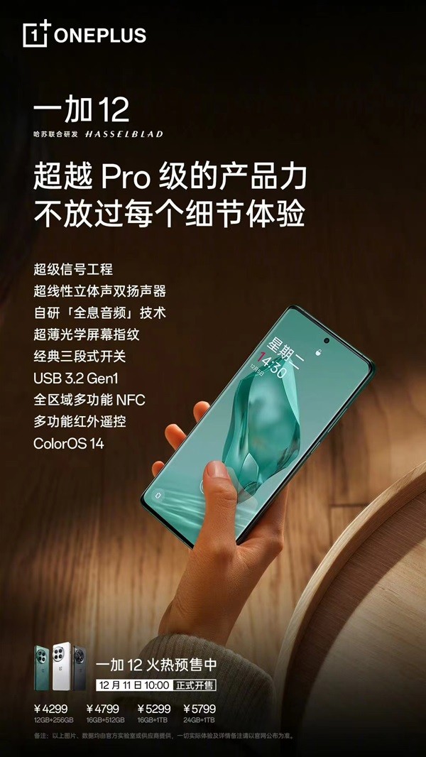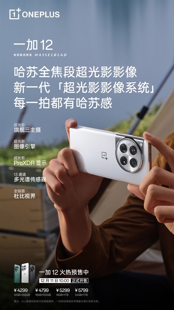 一加十年超越之作一加12将于12月11日10点全渠道正式开售,起售价4299元。