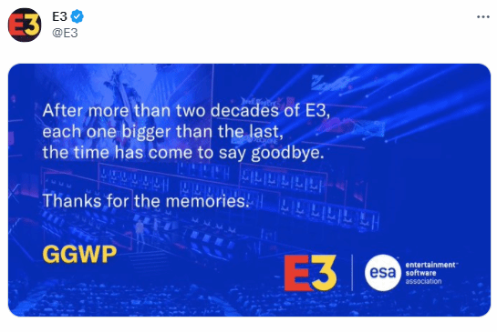娱乐软件协会(ESA)表示:“E3一直是美国和全球视频游戏行业的中心展示活动,在举办了20多年后,我们决定结束它。”