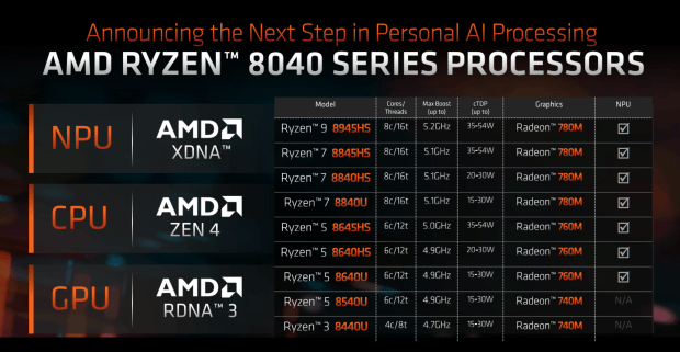在近日的AMD Advancing AI大会上,AMD正式宣布了代号为Hawk Point的下一代锐龙8040系列移动处理器。