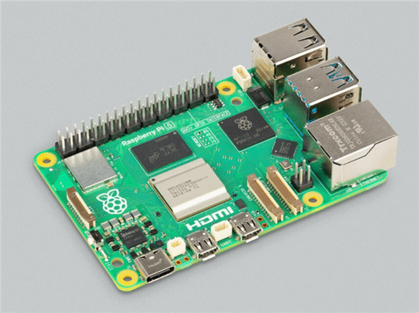 树莓派5采用博通BCM2712处理器,PCIe升级到了PCIe 3.0,不过五条通道中只有一条可以对外用,带宽为512MB/s。树莓派5没有标准的PCIe插槽,因此需要转接卡与ATX电源独立供电。