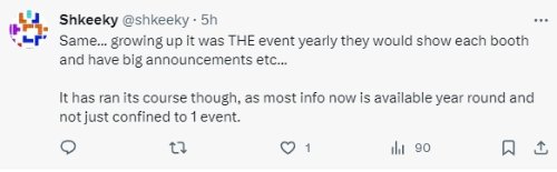 大量游戏博主发文悼念,其中不乏粉丝量上百万的油管主,纷纷表示自己还从没去过E3,这本来在他的遗愿清单上但现在看来没法实现了;更有玩家表示去一次E3一直以来是他的梦想但总是用来年再说等借口麻痹自己,现在感到十分后悔。
