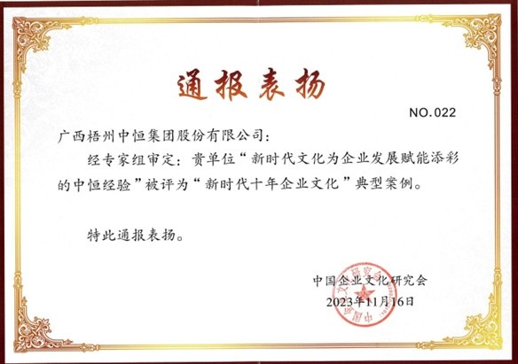 近日,中国企业文化研究会召开“总结新时代十年企业文化 探索数字化转型文化路径——中外企业文化2023南京峰会”,开展2023年度新时代十年企业文化经验与案例总结活动。在此次活动中,由中恒集团申报的《新时代文化为企业发展赋能添彩的中恒经验》获评“新时代十年企业文化”典型案例。